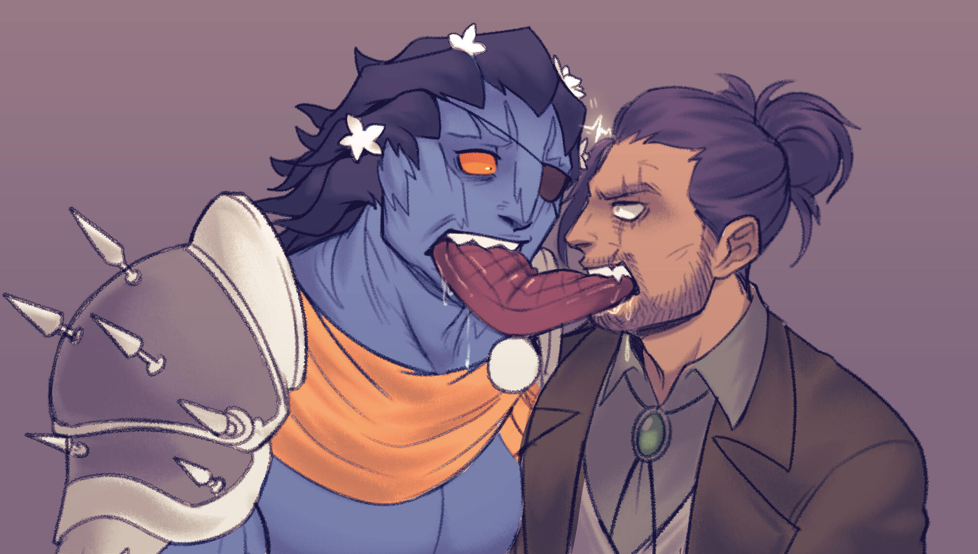 (Additional characters are priced at a percentage of how much of the second character is visible. 50% is the average cost for additional characters, though this may be more or less depending on your prompt for the commission piece.)